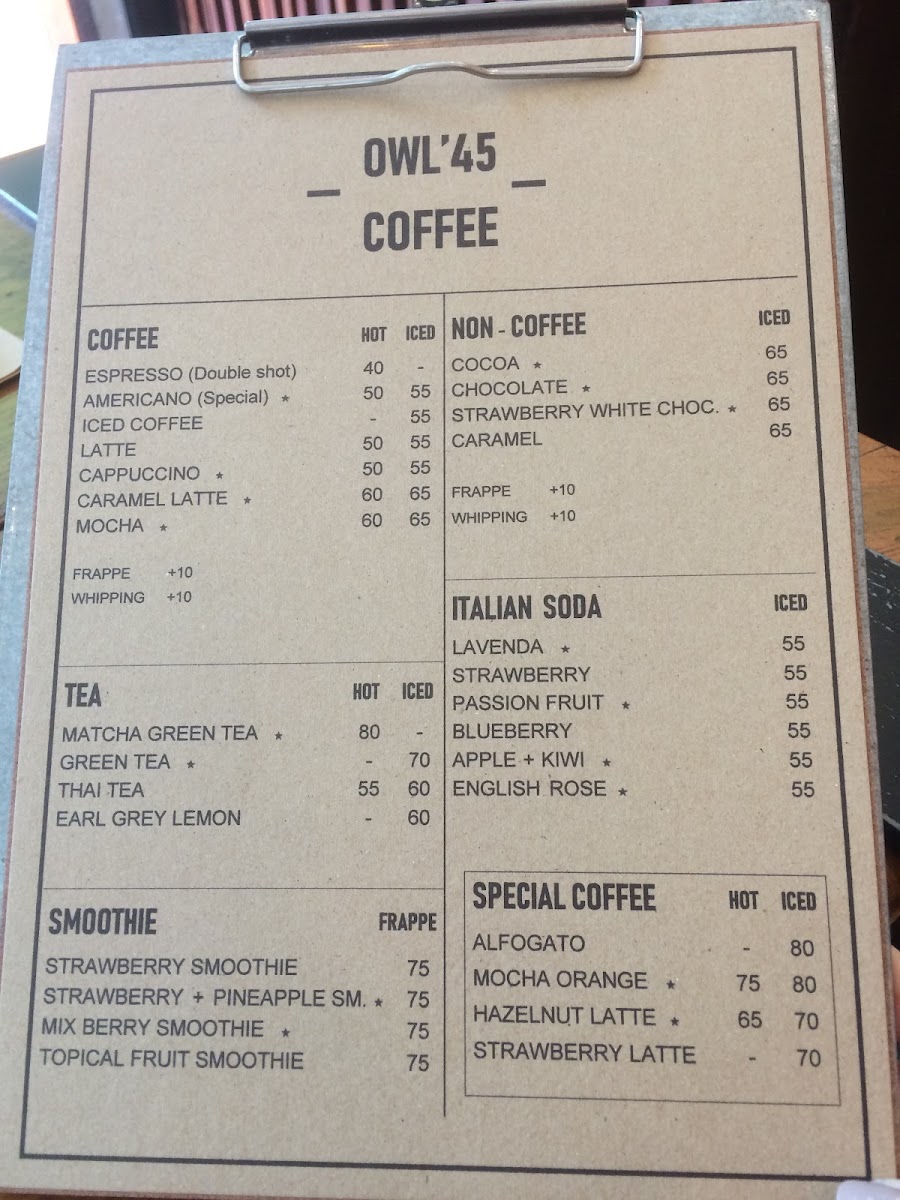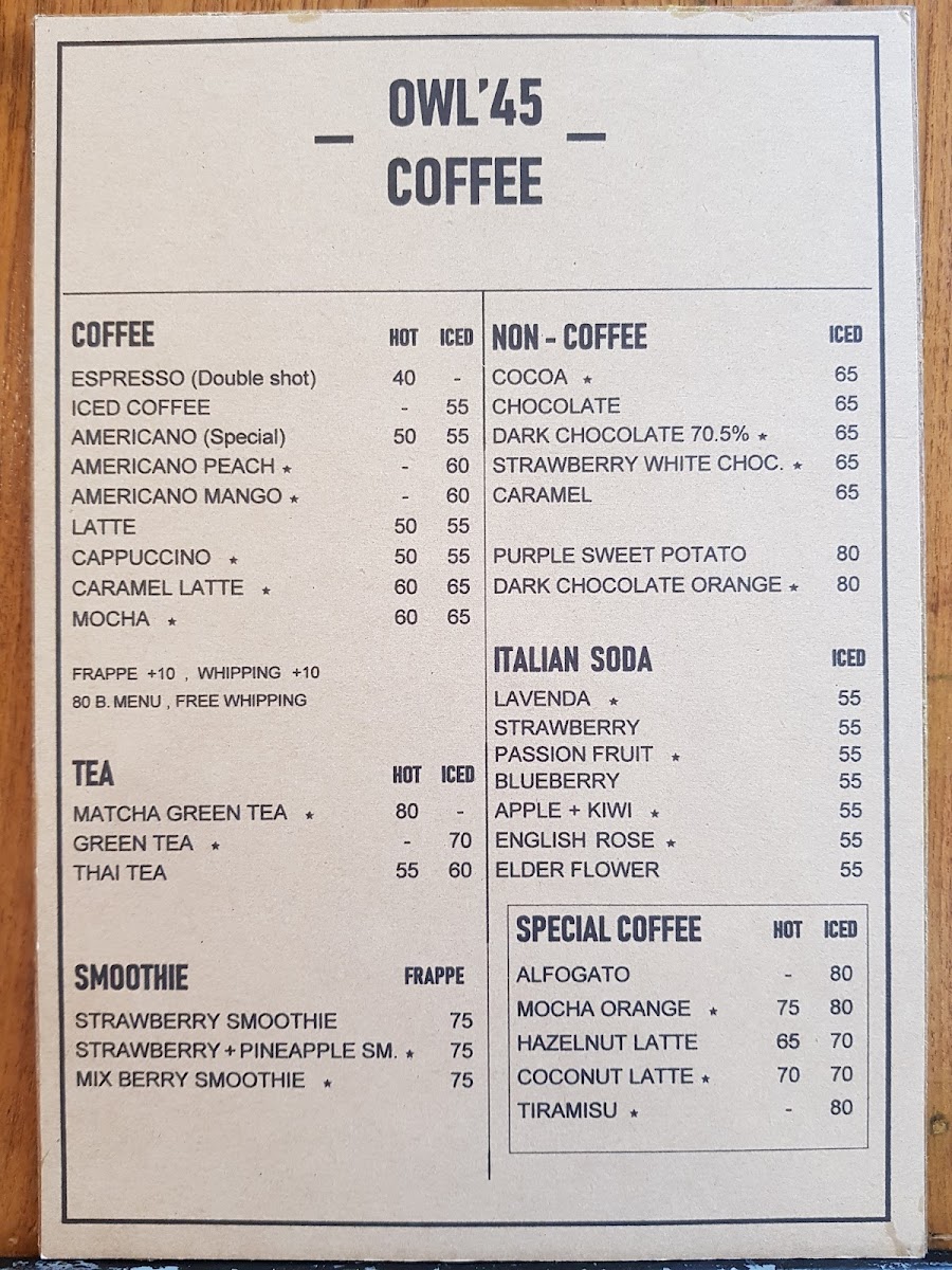 The ambiance of OWL’45COFFEE is perfect for those looking to escape the hustle and bustle of city life. With its inviting interior, it’s a comfortable nook where you can unwind, though currently, dining in isn't available due to health protocols. Nevertheless, you can still enjoy your coffee in a tranquil atmosphere, making it ideal for on-the-go coffee lovers.